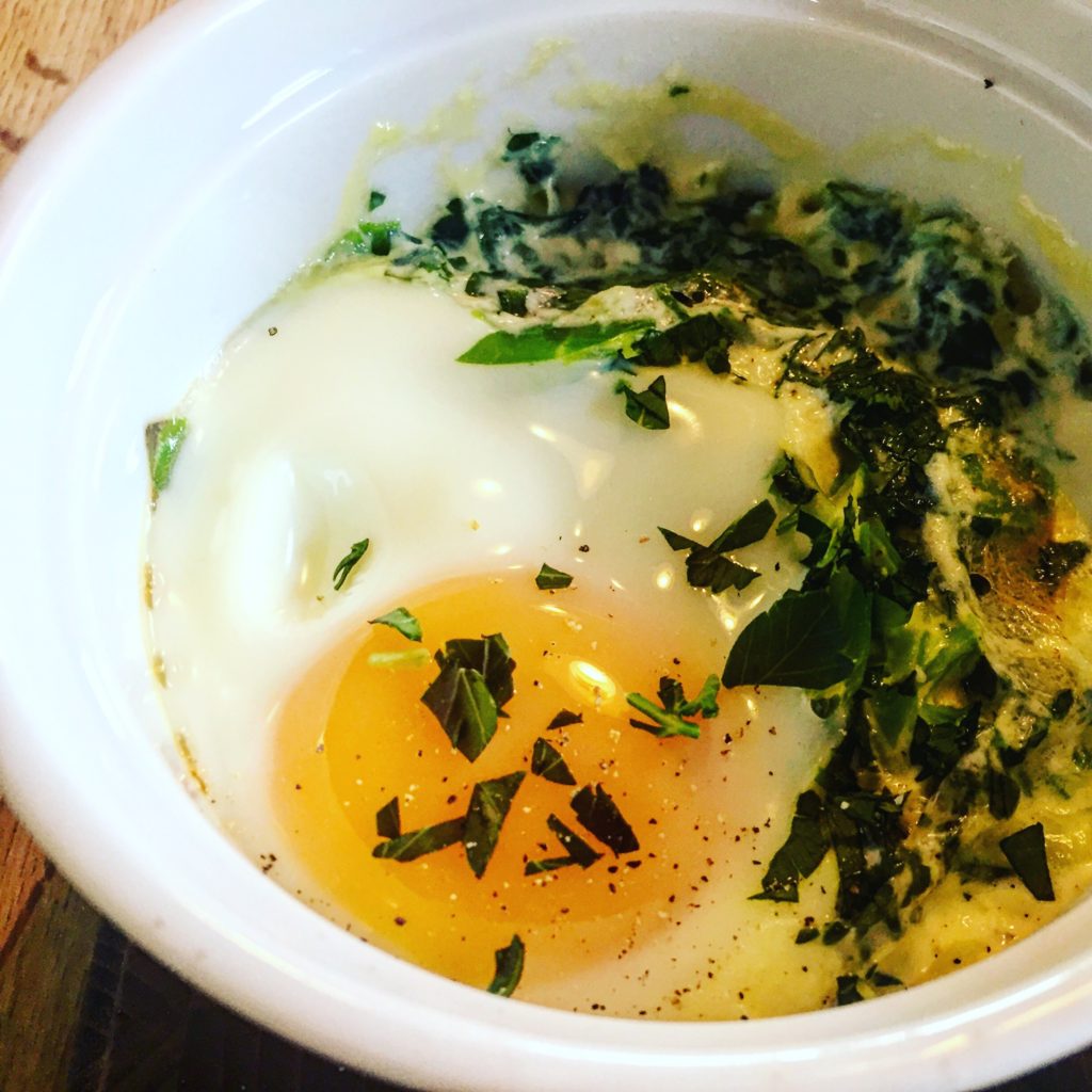 Her er en opskrift på æg en cocotte. Det er en lidt opgraderet udgave af et spejlæg, som smager lækkert til en god brunch. Det bliver bagt i ovnen med spidskål, persille eller ramsløg samt lidt fløde. Det giver en rigtig god smag sammen med ægget. Vi krydrer med muskat, da det passer perfekt til spidskål. I stedet for spidskål kan man sagtens bruge andre grønsager f.eks. broccoli eller friske, grønne asparges. Denne påskrift er til 4 personer.